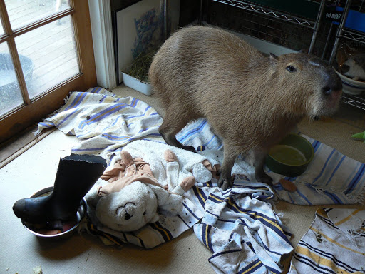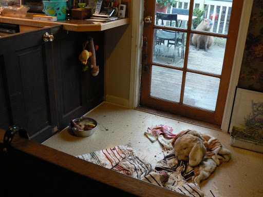 At least my rug and x-pen are still the same! I’ll just sit way over here where there is still some wood floor showing.
