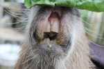 Guinea pigs and rabbits who eat lots of hay (and not so many pellets) seem to require less dental work. One capybara who developed severe dental problems had a very poor diet when he was young, certainly not enough Vitamin C and D. His bones were porous and ultimately his jawbone wasn’t strong enough to support his teeth. http://gianthamster.com/2014/02/in-memoriam-garibaldi-rous/