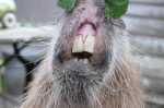 Can you imagine getting smacked in the face so hard that your two upper incisors (those big front ones) fracture, but not enough that they fall out? They are kind of dangling there, useless, and your mouth is sore. I actually had cuts in my mouth that the Farm Manager put ointment on for a few days. Nobody knew when my teeth would fall out, but we thought it might take a week, maybe two, for them to grow out to where they would fall out. We heard from other capybara owners that they usually grow completely back in two weeks. The Farm Manager and The Bartender started talking optimistically about their trip to Florida on Saturday, but nobody started packing.