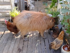 Dobby was great with grown hens, though. He’s a bit pouffy in this photo.
