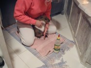 Milk makes a huge mess. That is the bathtub on the right side of the photo.