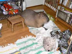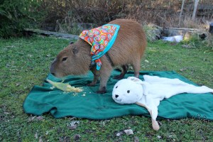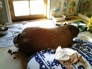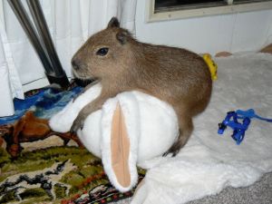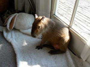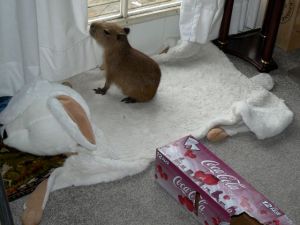 Dobby’s best friend wasn’t a capybara, and it wasn’t me. It was an IKEA White Rabbit Rug, like a bear rug, but, you know, a big white rabbit.