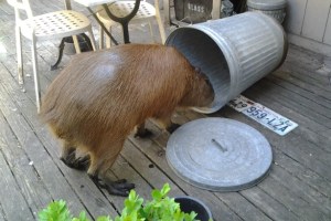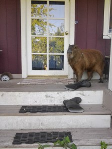 It wasn’t Dobby’s size that caused him to be banished from the house. Sure, he still had access to the kitchen, but he insisted upon marking his territory. Trust me, you do not want a capybara to mark your bedroom. Or anywhere in the house. But size is a problem if you need to sequester him.