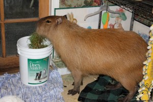 In my opinion, even grownup capybaras are cute. Dobby stayed adorable throughout his 9.5 years of life. Beauty is in the eye of the beholder, though. An uninformed person might well be intimidated by a mature capybara. Young capybaras become rambunctious teenagers and fairly destructive adults. If you now understand this, my work today is done.
