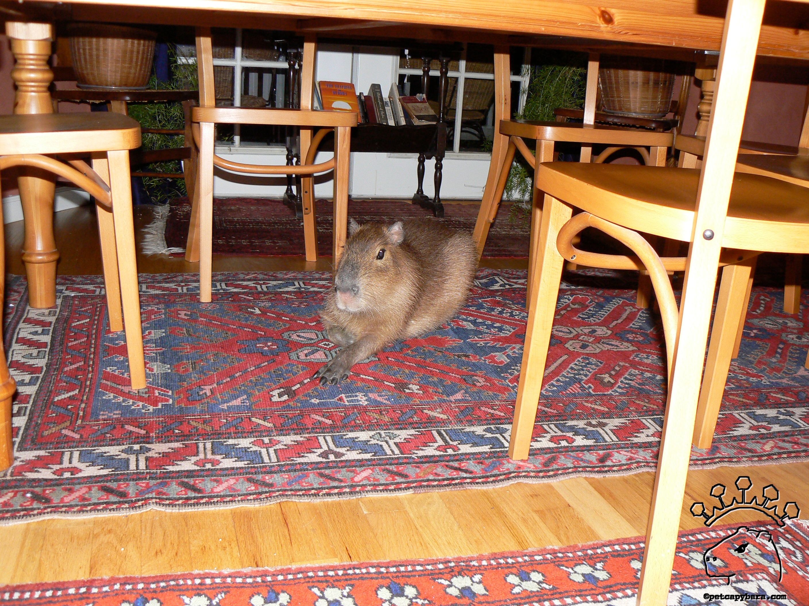 At eight months, Dobby easily fit under the dining table where he stealthily ate our shoelaces