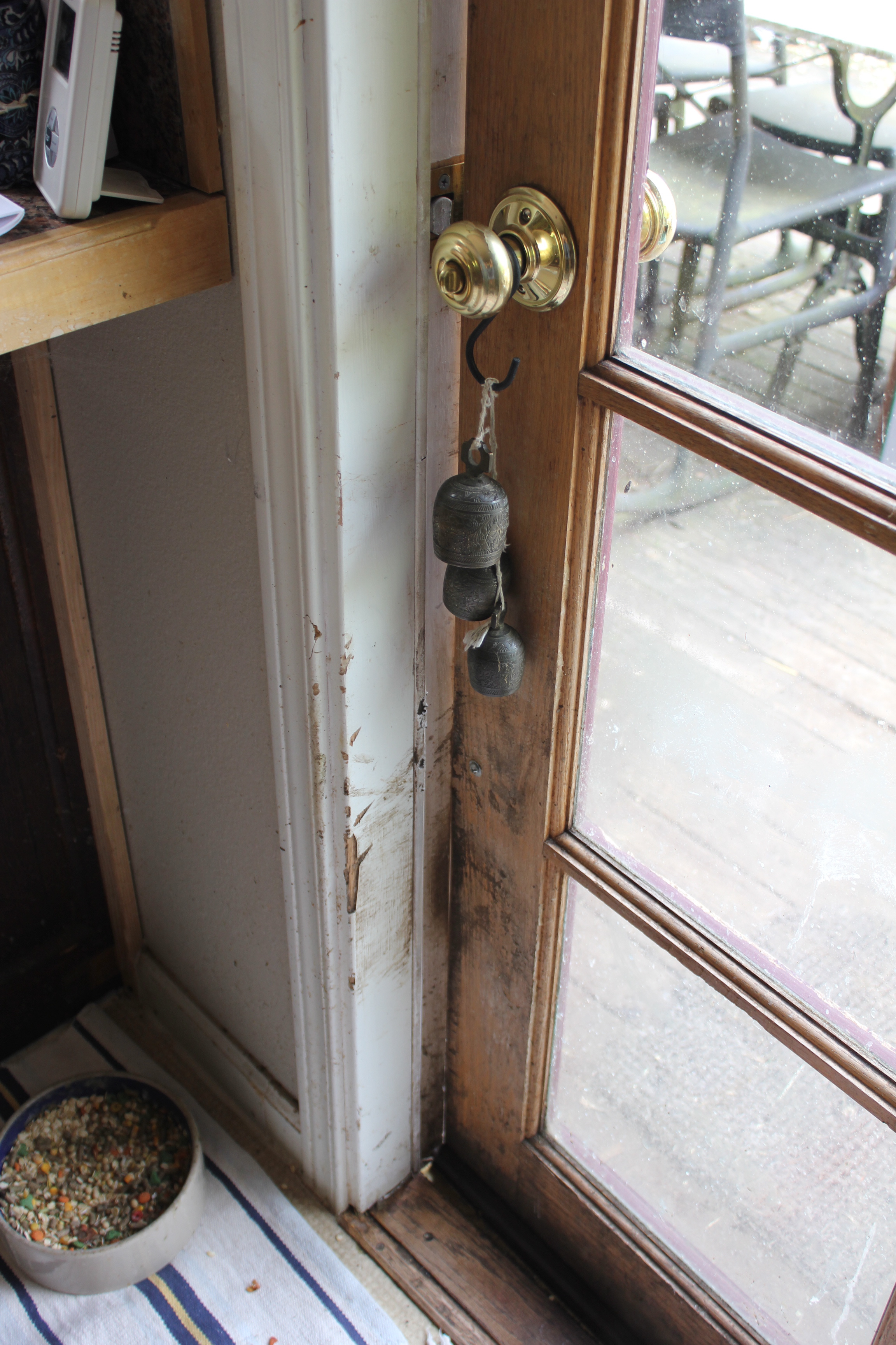 Here’s the door frame inside. the door accidentally latched one day and he panicked when he couldn’t push it open. Most of this damage happened in under five minutes.