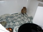 - I used to sleep right next to Stacy’s bed. I ate her bed ruffle so she put barricades there.